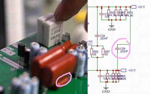 Để biết vị trí và giá trị kích thước linh kiện, bạn có thể mở trực tiếp tệp Project của mình, ngay lập tức, bằng cách mở trực tiếp Project D2K FB, bạn sẽ dễ dàng xem chi tiết các giá trị linh kiện hơn, và bạn cũng có thể trực tiếp xem Đường dẫn PCB và giản đồ. Truy cập liên kết sau để mở Project D2K Fullbridge class-D: EasyEDA Project Class-D D2K Fullbridge .Trong phần tụ điện LPF, mình thêm một CAP 220N 250V song song với các đầu ra + và -. nếu bạn không muốn mắc song song, bạn có thể sử dụng tụ 1,2uf trên C31 và C32,