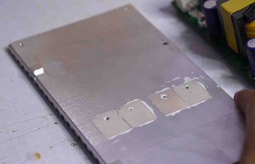 Cái tản nhiệt mà mình sử dụng có kích thước rộng 10cm, dài 19cm và dày 5mm, cái này là đủ cho chiếc ampli full-bridge này, nhưng phải gắn thêm một cái quạt nữa, để không khí lưu thông tốt. Mặc dù class-d có hiệu suất cao nhưng đối với những ampli công suất có công suất lớn thì nên trang bị thêm quạt, để hiệu suất ổn định hơn.